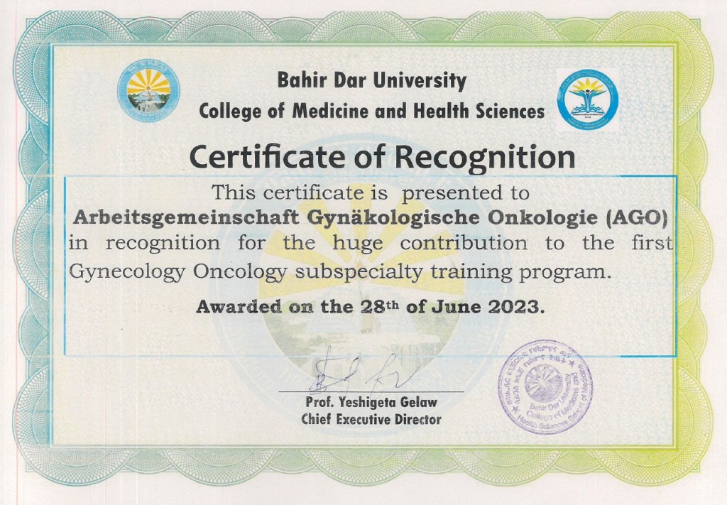 Nachdem eine erste Generation von Gynäko-Onkologen in Addis Abeba ausgebildet wurde, haben nun die äthiopischen Experten in Zusammenarbeit mit Kolleg*innen aus Deutschland auch Gynäkolog*innen in Bahir Dar zertifiziert.