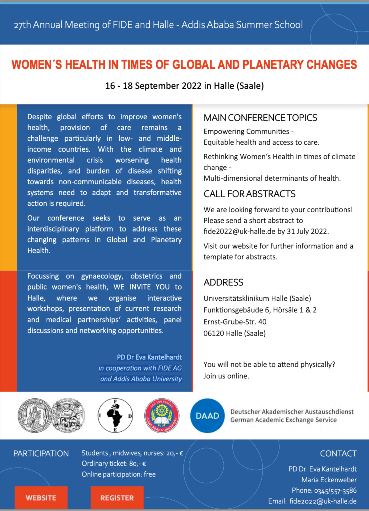 Focussing on gynaecology, obstetrics and public women’s health, WE INVITE YOU to Halle, where we organise interactive workshops, presentation of current research and medical partnerships‘ activities, panel discussions and networking opportunities.